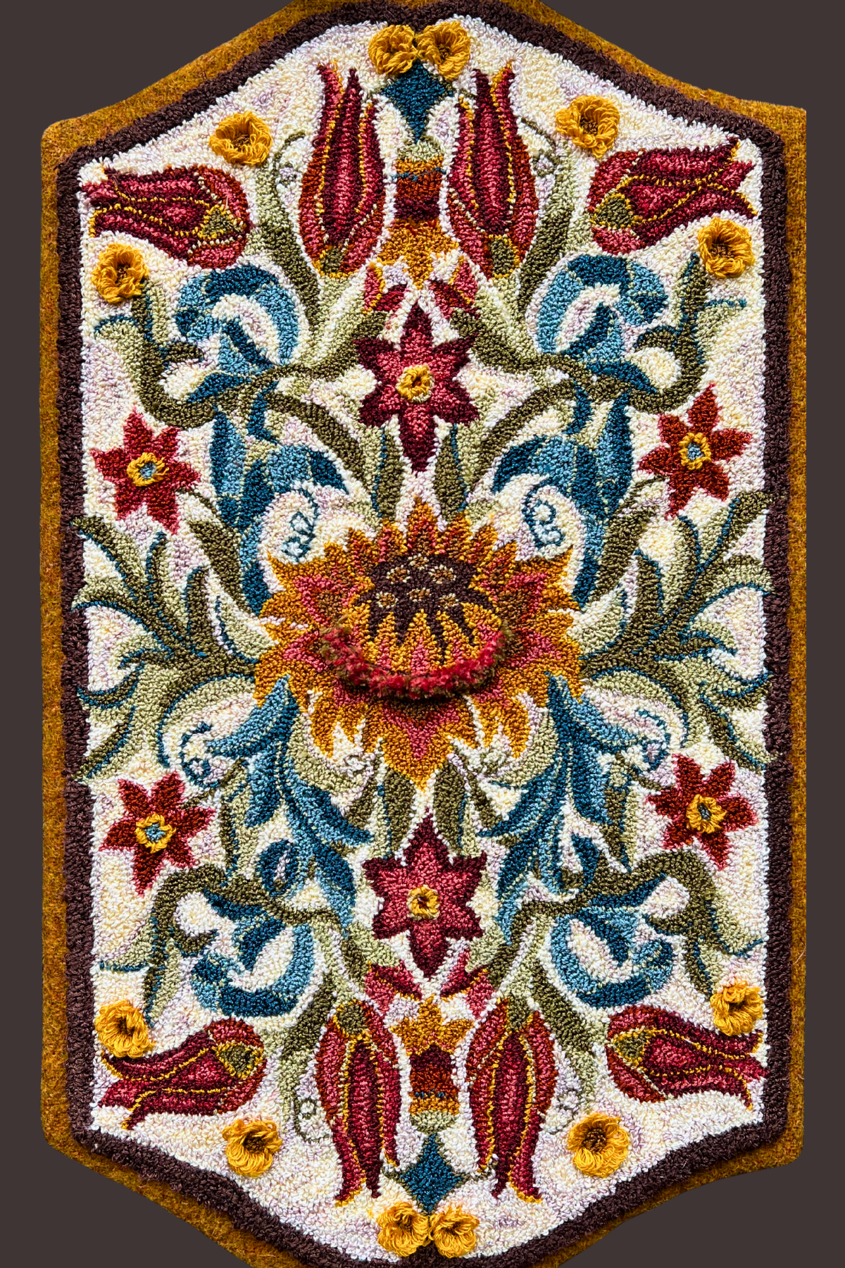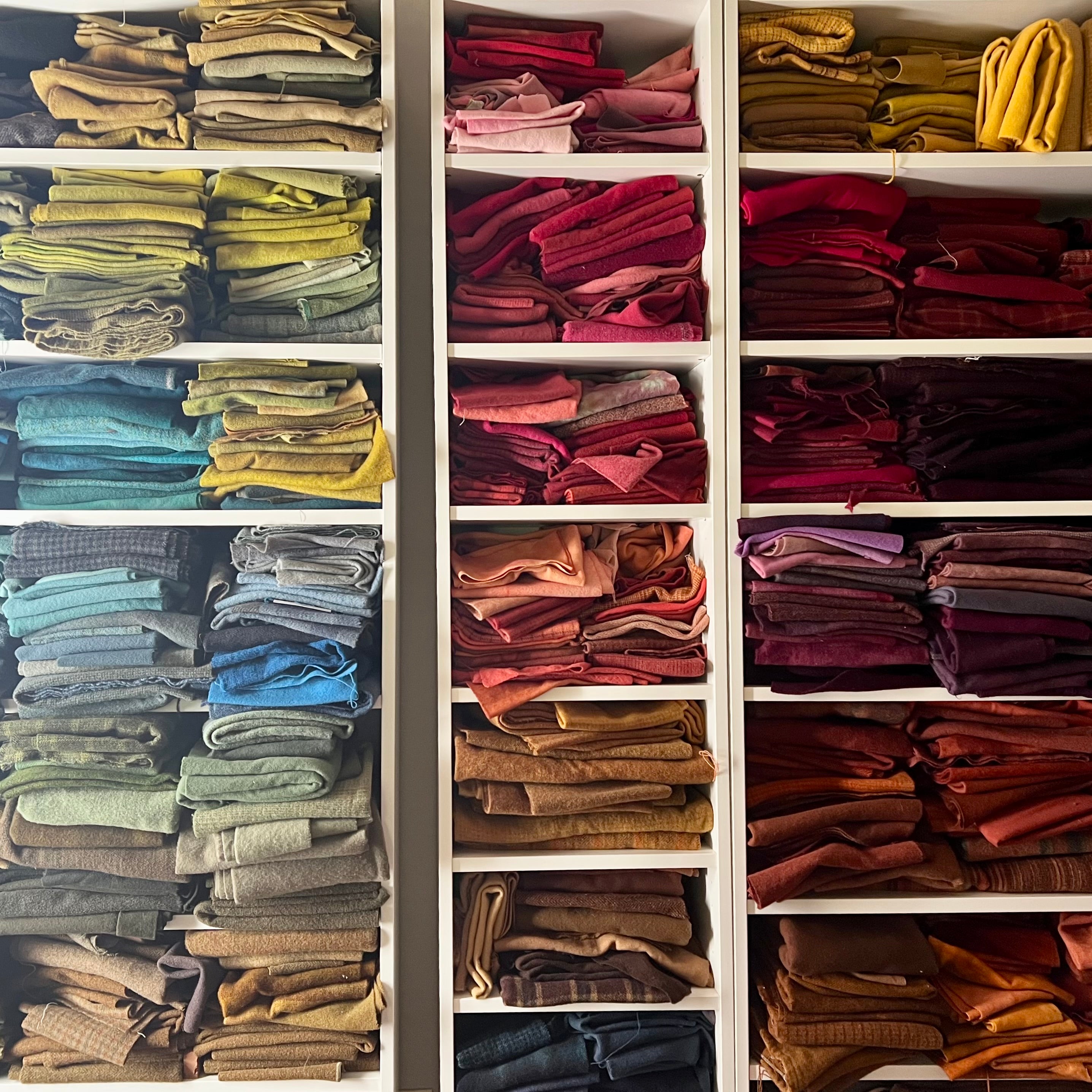 Shopping for thrifted wool fabrics is where my rug hooking journey began—a start that honors the craft’s history and inspired my business name, Orphaned Wool. From there, I naturally found my way to punch needle embroidery, often using wool threads that keep that connection alive.… And yes, my stash of wool fabrics and threads keeps growing—because in the fiber arts, there’s really no such thing as too much fiber!