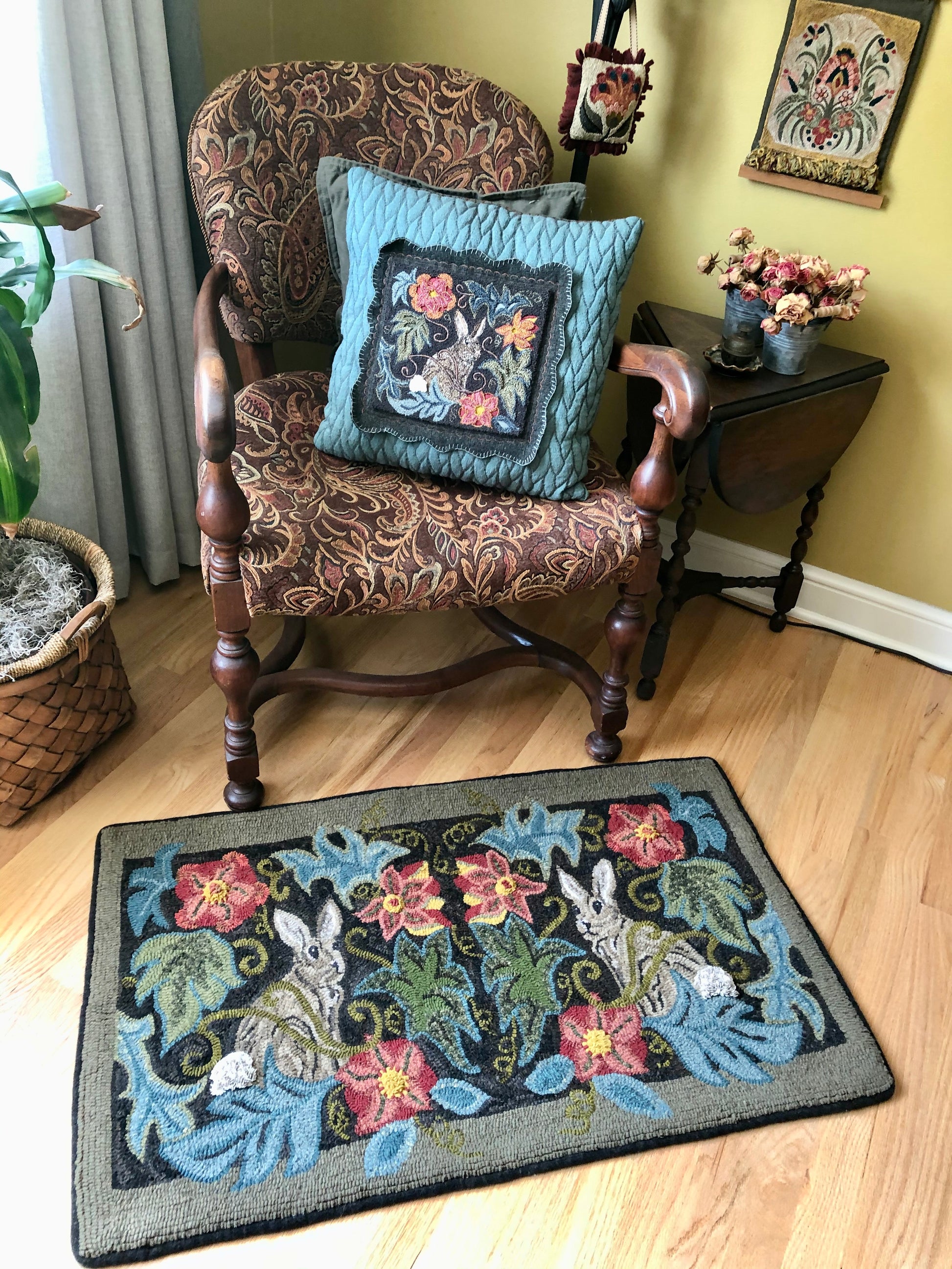 Zum Muster „Gartenkaninchen“ gibt es auch ein passendes Punch-Needle-Design, das Muster „Gartenfuchs“ (wird separat verkauft), die zusammen ein schönes Kissenset ergeben.