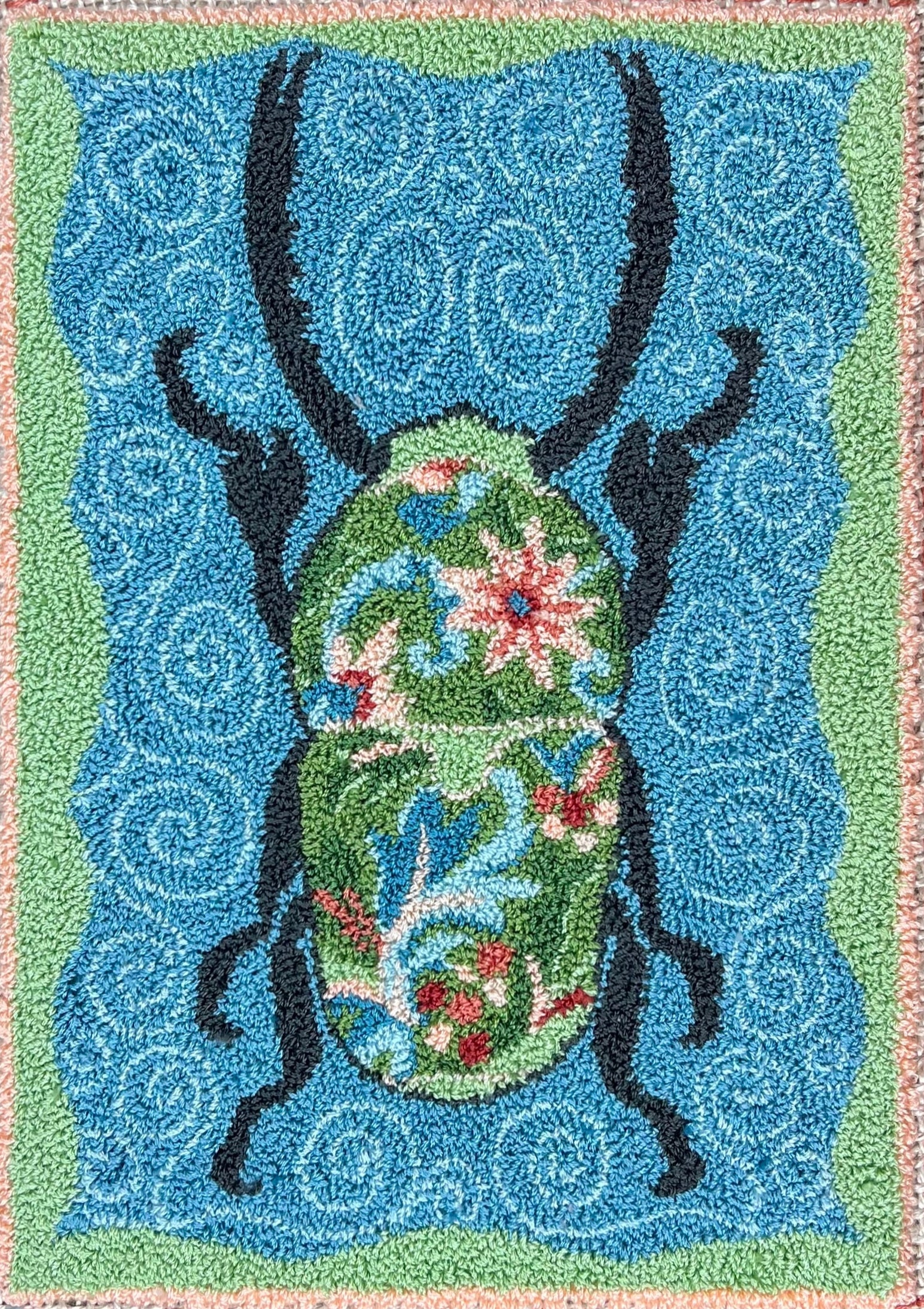 Beetle In Bloom Rug Hooking Pattern - Floral Beetle Design